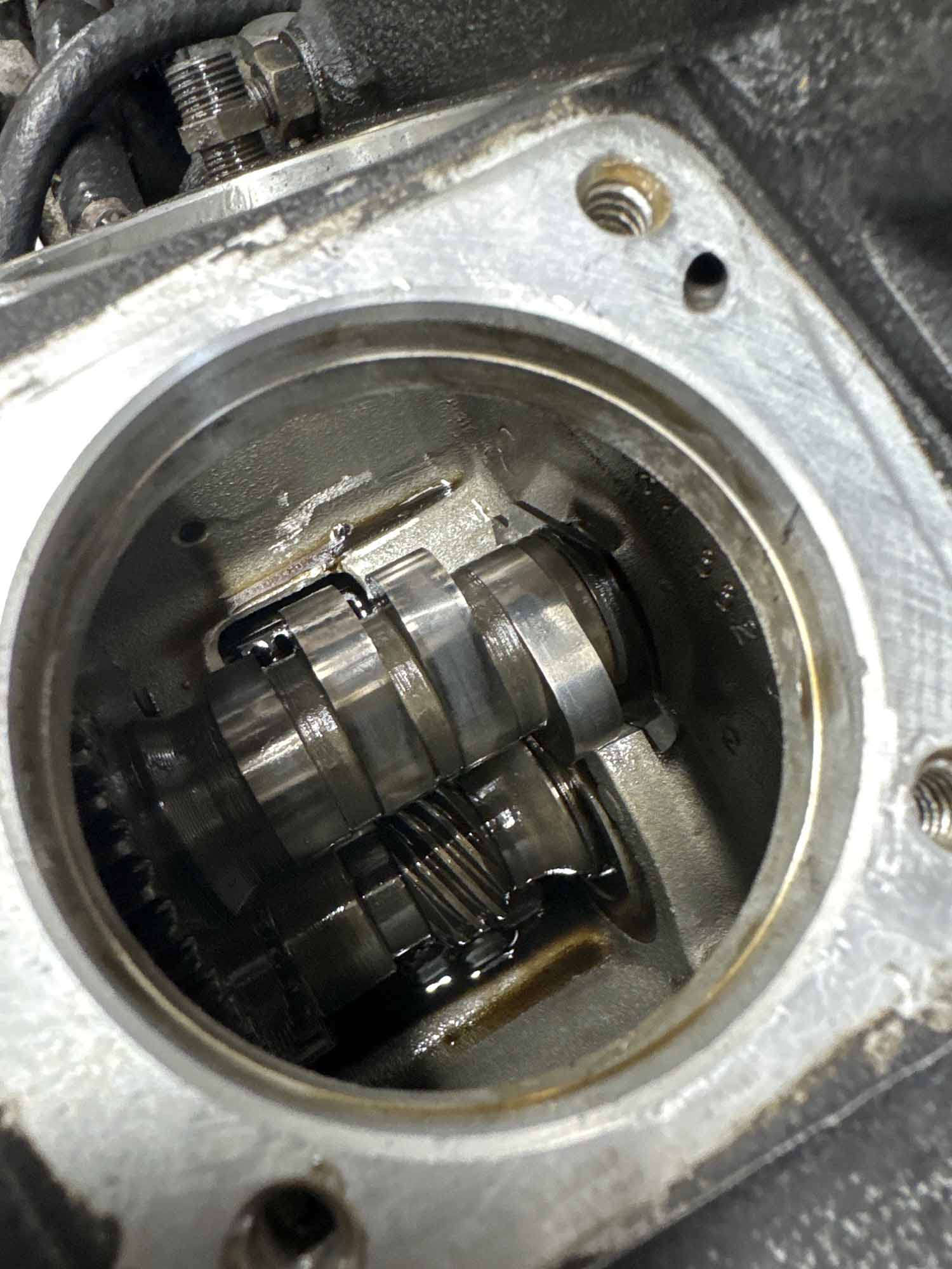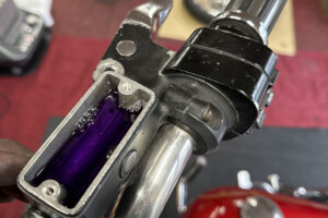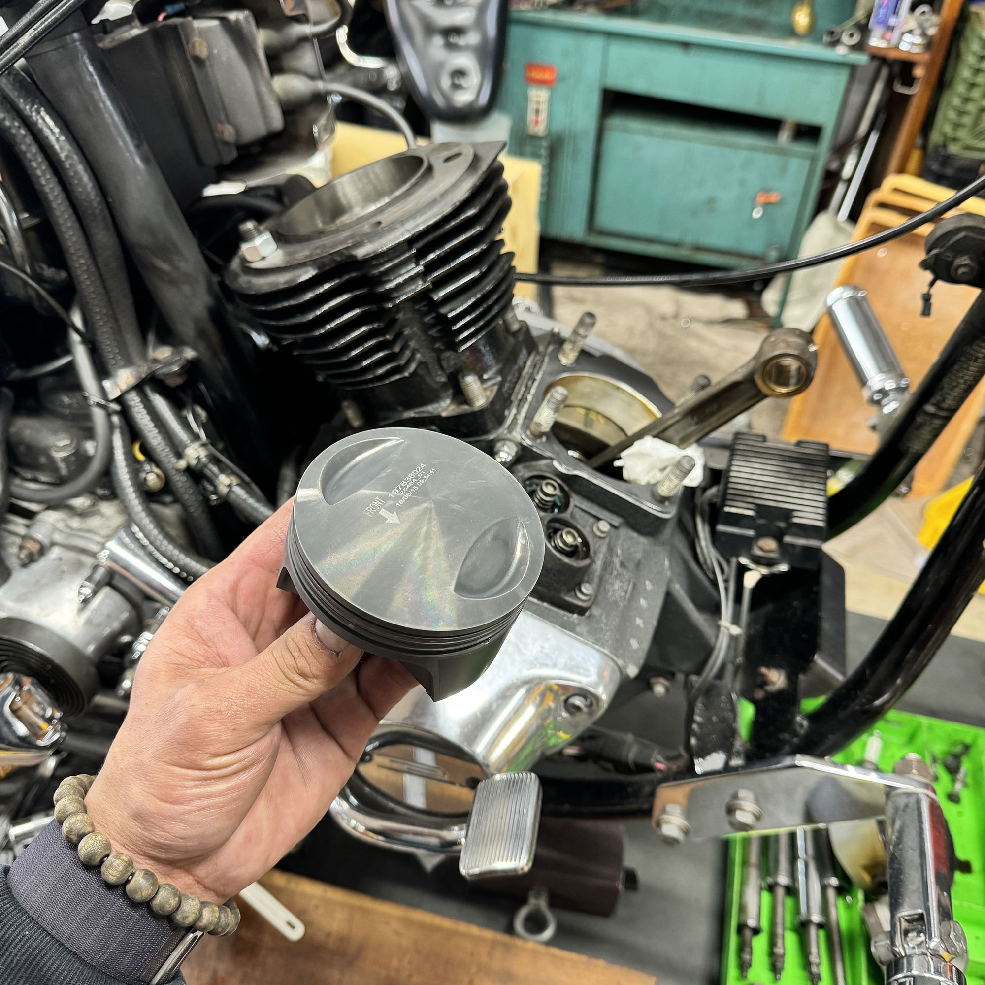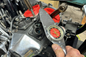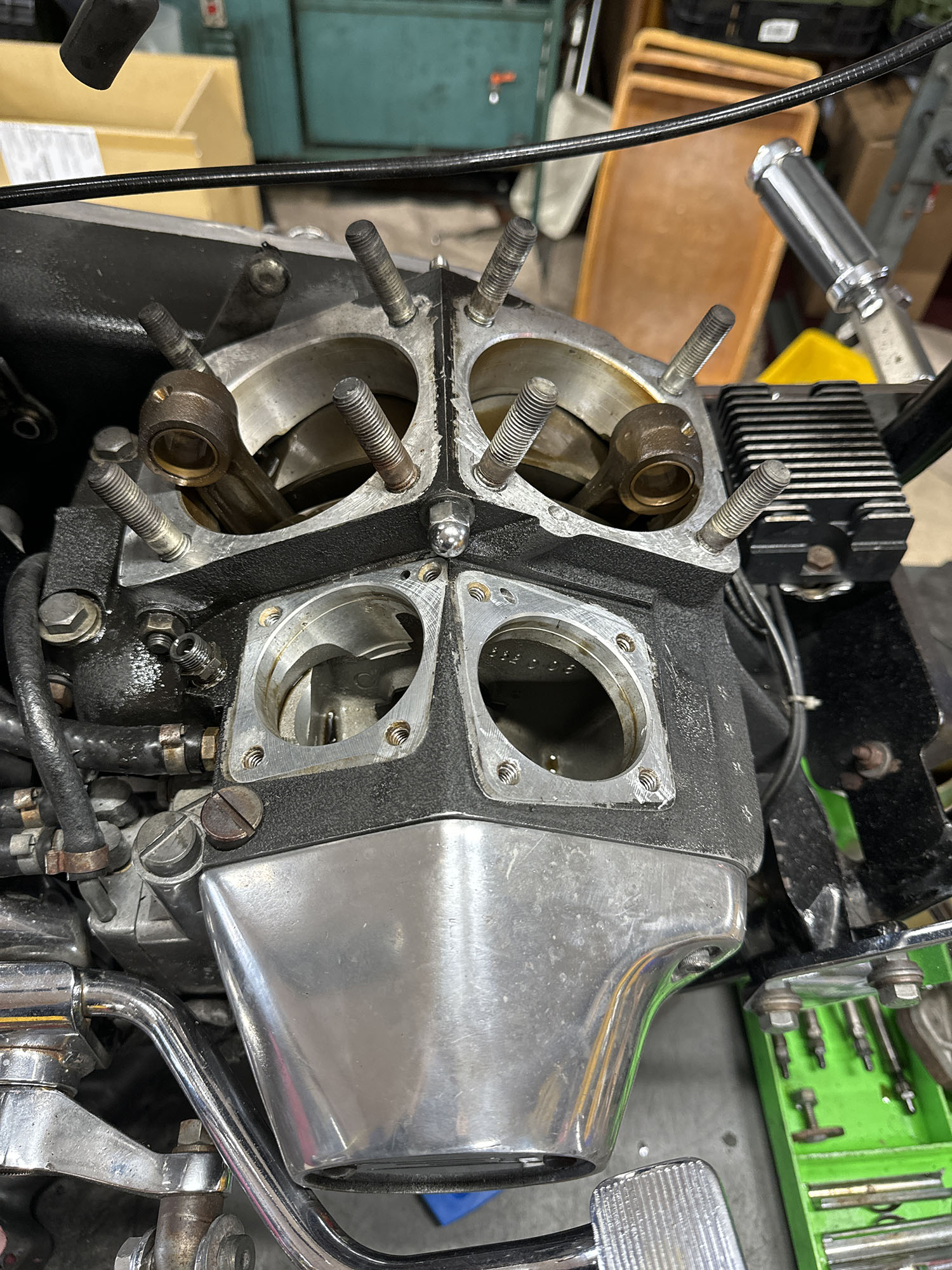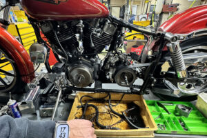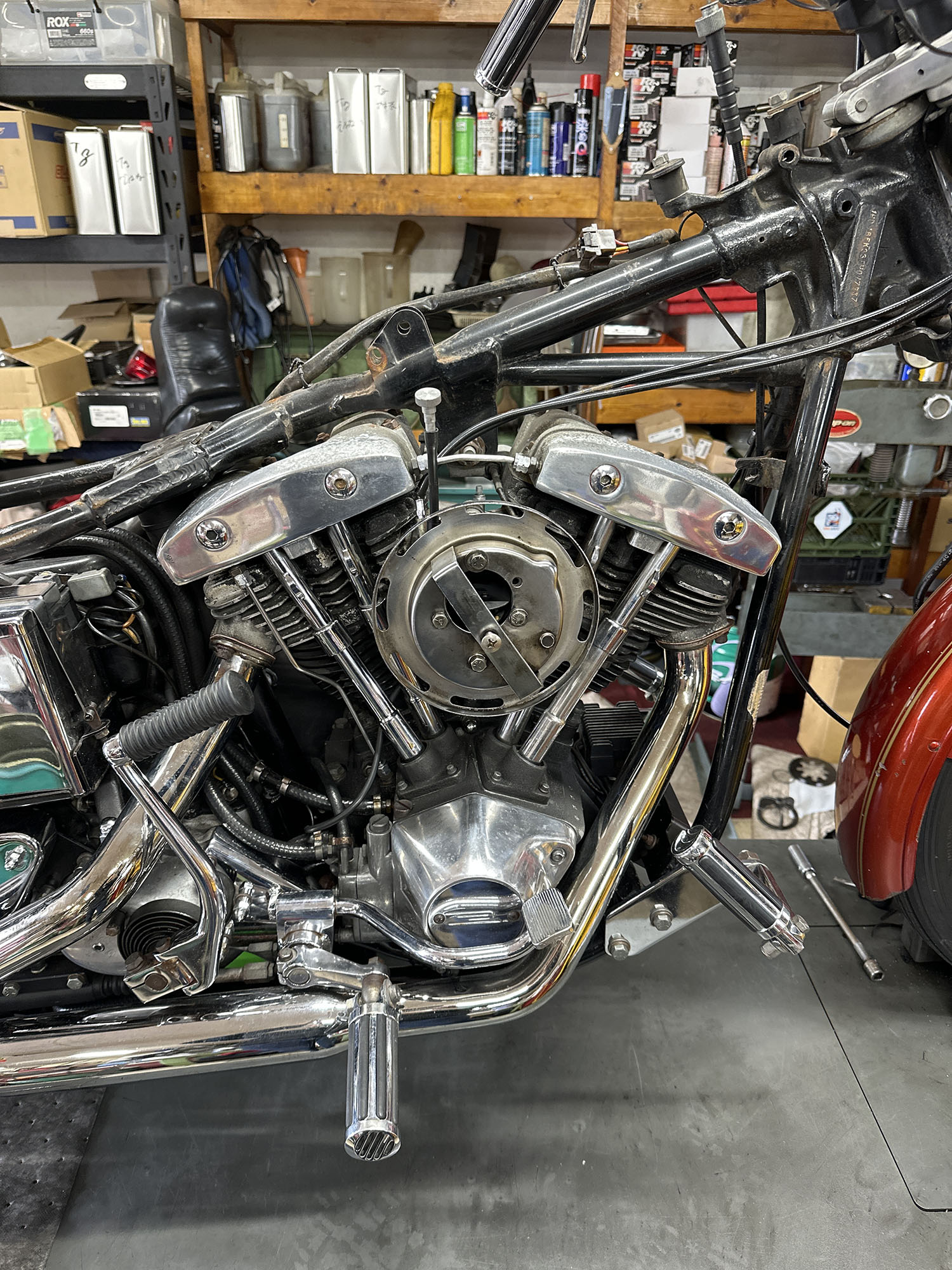 クローズド・プライマリー加工を施す。この時代はエンジンのオイルポンプからプライマリーチェーンへチョロチョロとオイルが供給されていた中途半端な湿式クラッチ状態だったが、エンジンからの供給をとめ、プライマリーを塞ぎ、十分なオイルで満たして常時潤滑を行う、現代のやり方へとアップデート。こうすることで部品の摩耗だったり、腐食などを防ぐことができ、状態の変化を大幅に防ぐことができる。ただ、元々がオイルで満たして使うようなことを想定されてないため、オイル漏れが多発するところだがピッタリ止めることに成功している。ここはノウハウが多数存在する。補足に、ステーターコイルも交換し未来の不具合を予防。