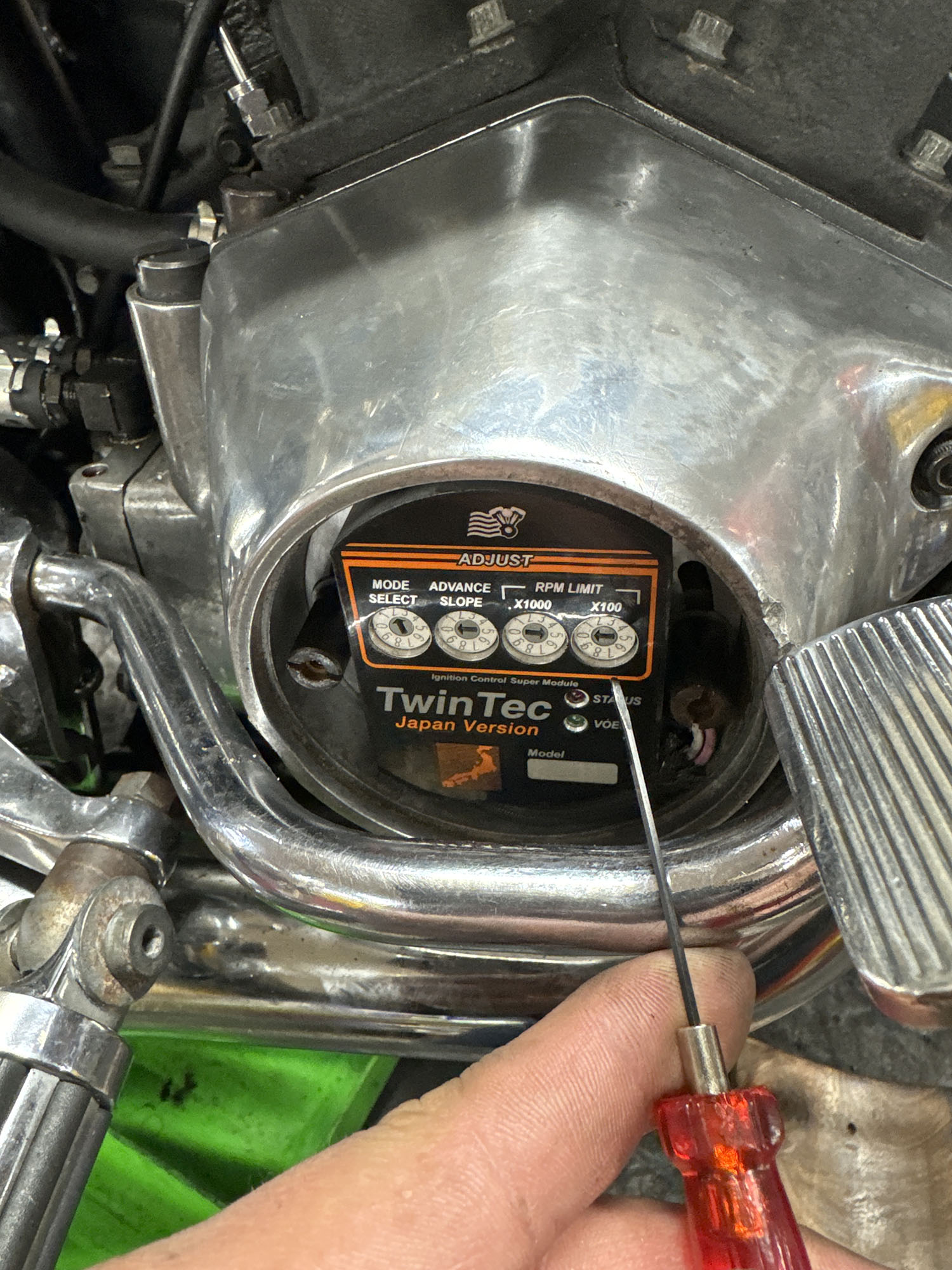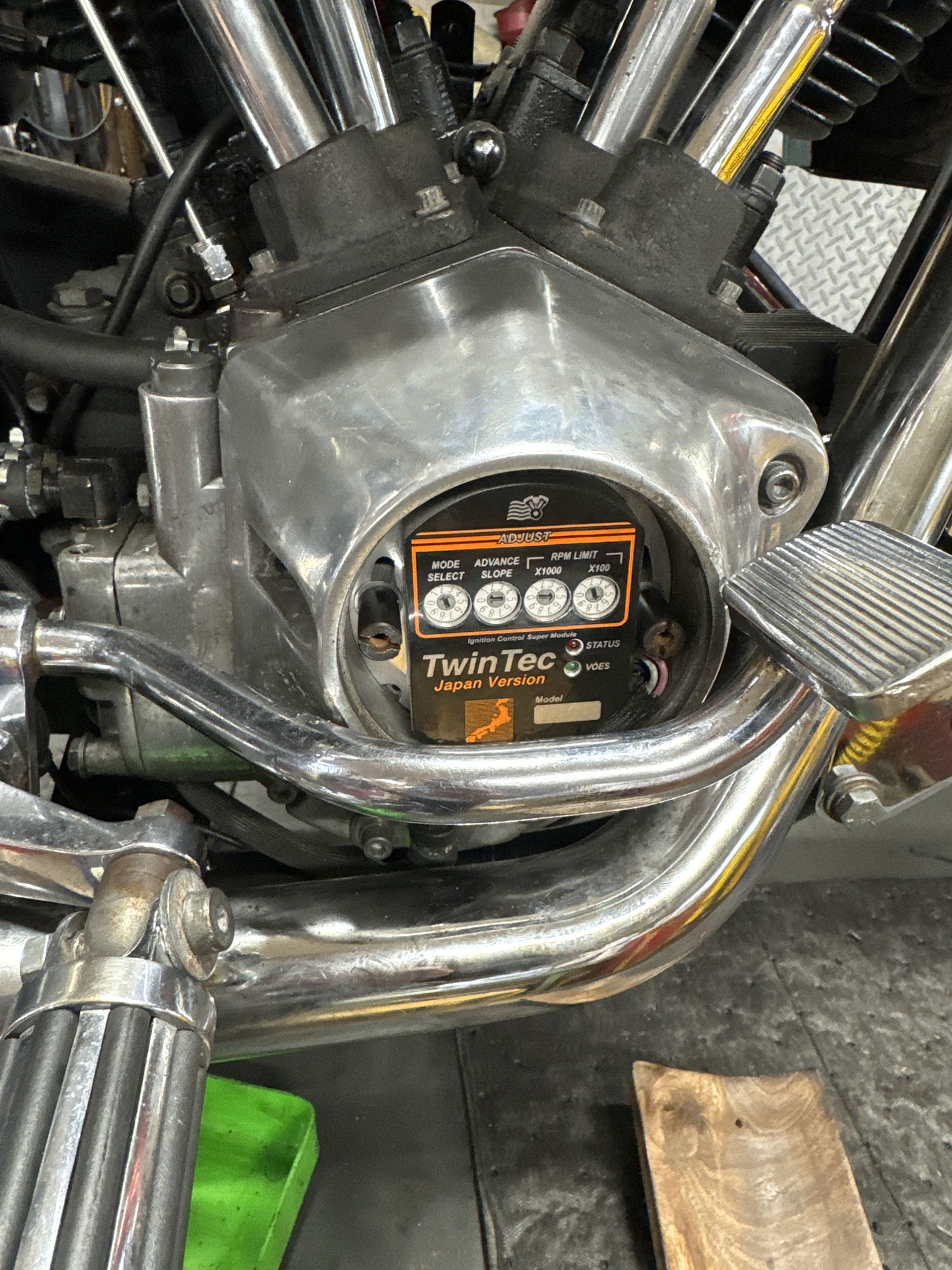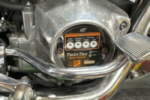 点火装置はフルトラ。ツインテック1005へ。ツインテックはキックスタート容易にすることができつつ、パソコンで書き換え可能なアドバンス40°まで振れるデジタルマッピングで構成され始動性がよくて良い走りが実現できるんでショベルでも人気です。これも予算増やしてでもやった方がいいこと。