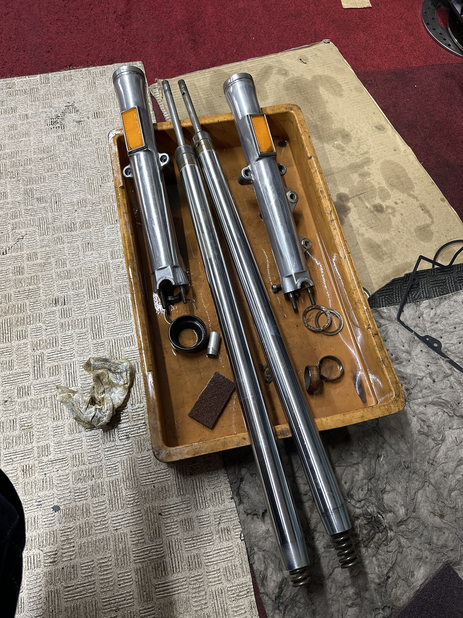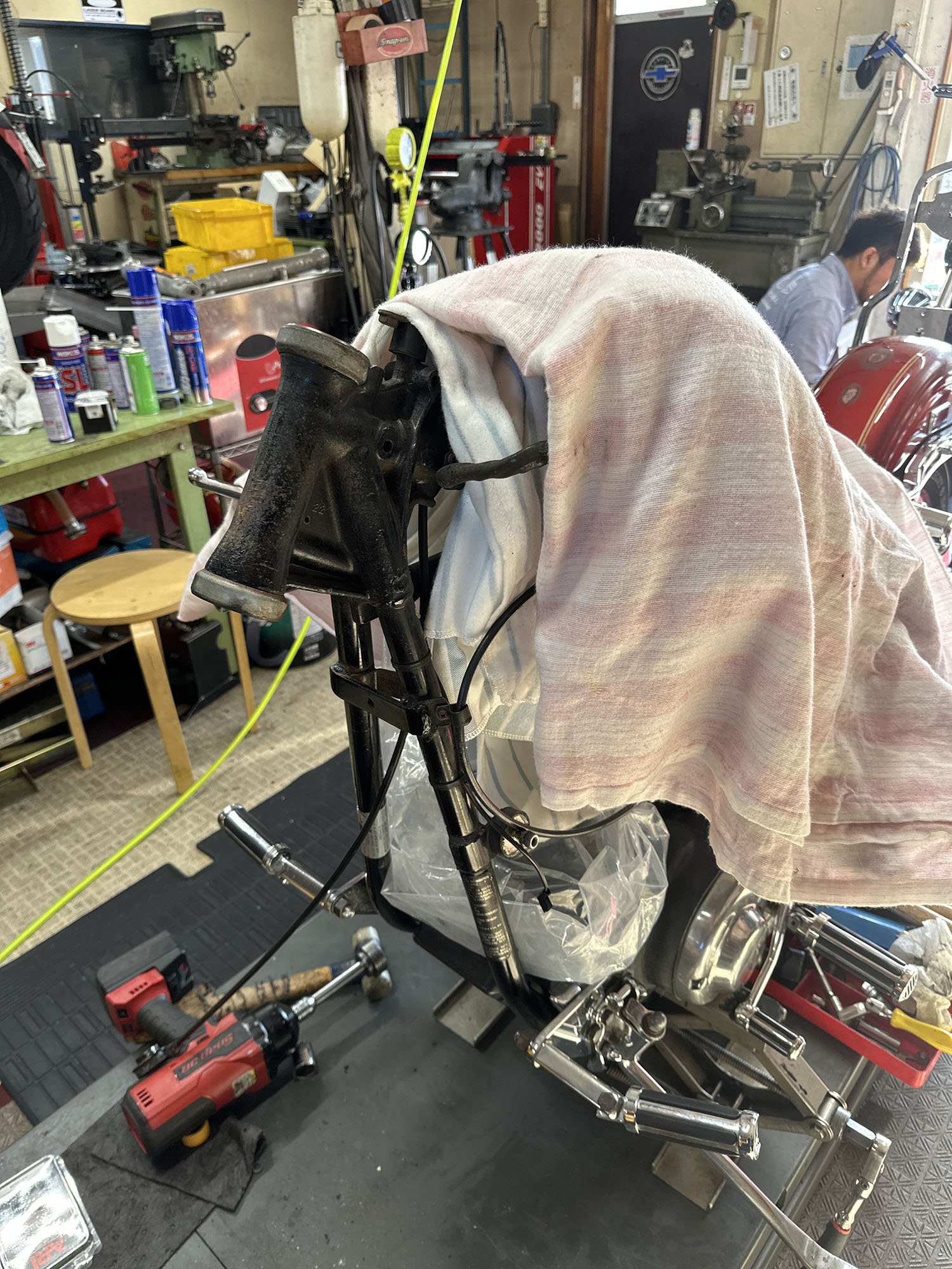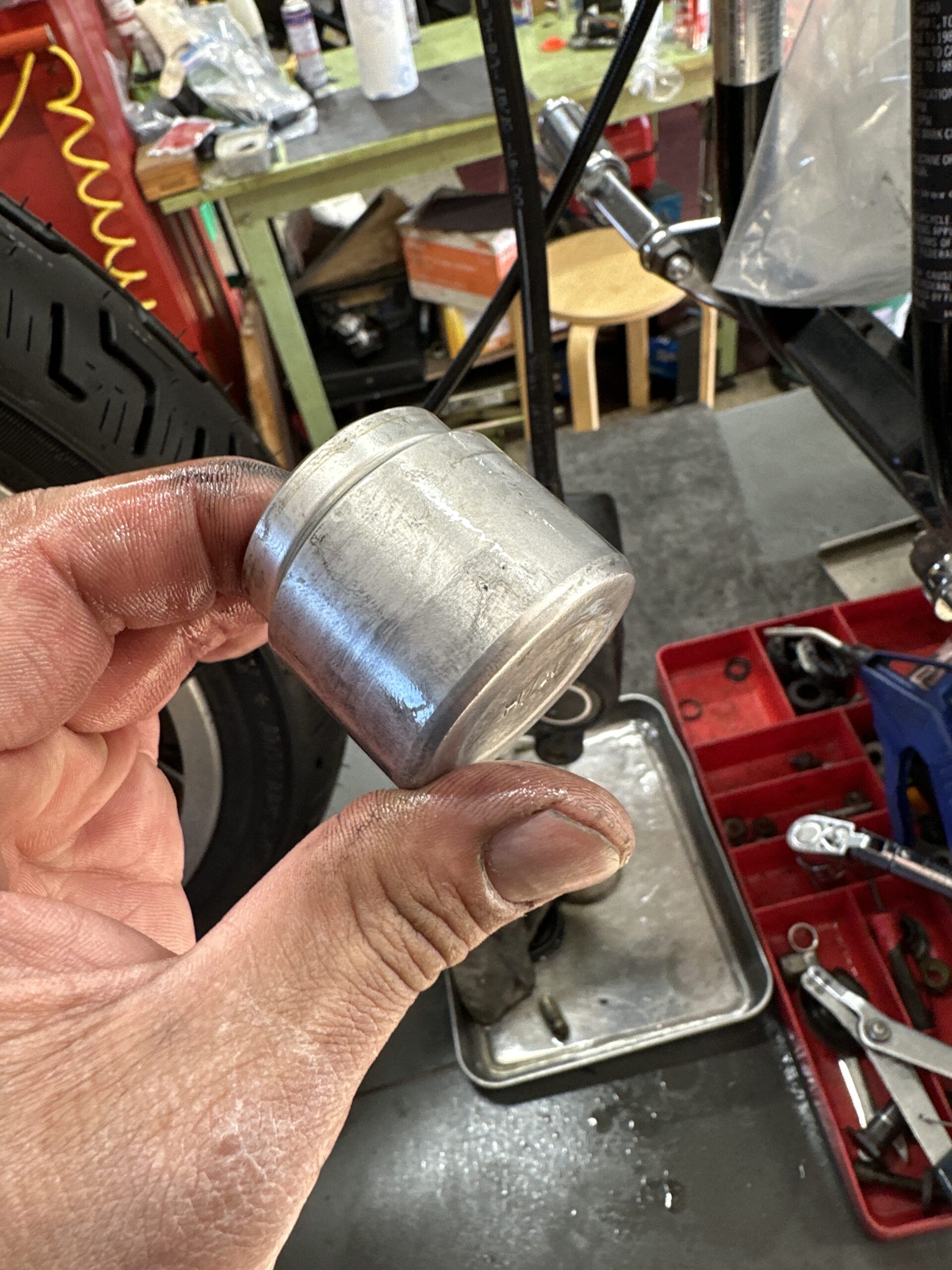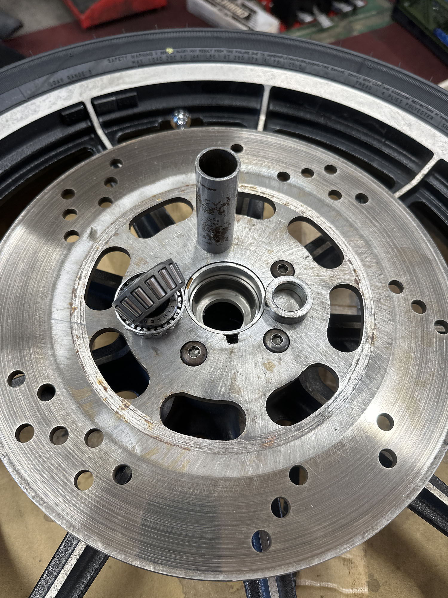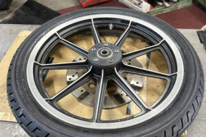 一通りネック・ホイール・スイングアームのベアリング周り。ブレーキ キャリパーとマスターのOH。タイア交換。バッテリー交換。やりました。