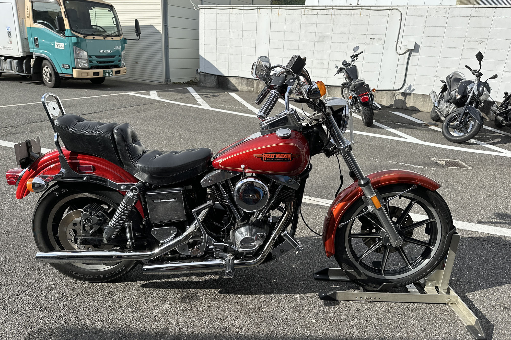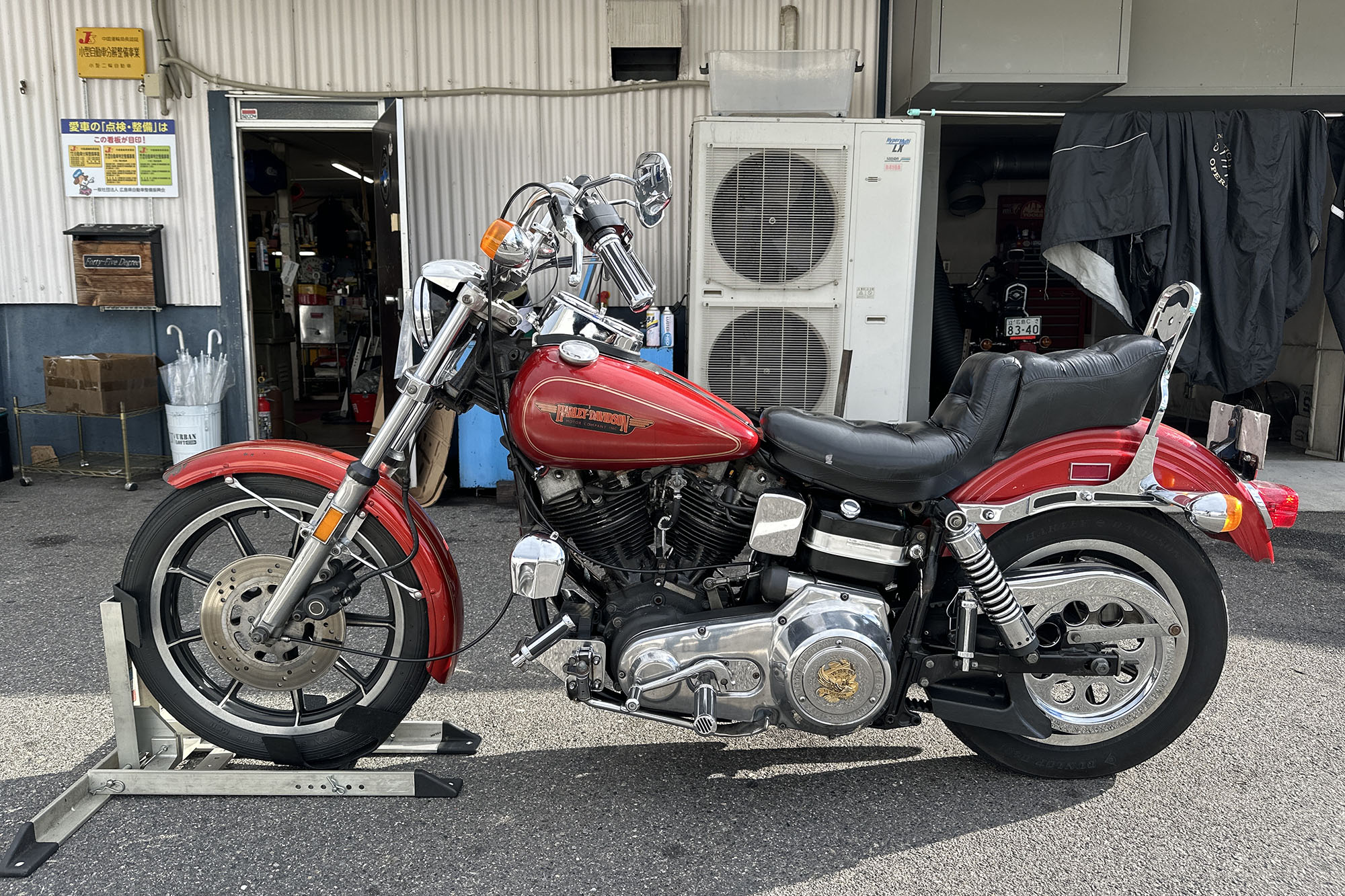 そんな昨日の今日。車検で入ってきた一台のFXSB。1984年式。この車両は縁があってうちにやってきて、買おうとしてる人と同級生、という理由でお買い上げ頂いた車両だった。あるあるです、生まれ年のハーレー欲しい、って。