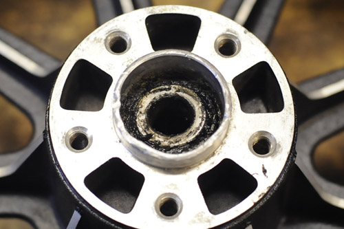 「純正9スポークキャストホイール」の取り付け依頼があり、お預かりした際にホイールの損傷を確認。ハンマーなどで叩かれたように、ボコボコです。そのままではホイールシールを取り付ける際やブレーキディスクを取り付ける際に問題が起こってしまいますので修理して取り付けました。が、修復後の写真を撮り忘れてますのでビフォーアフターは出来ません・・・・。こんな状態でも「なにもなかったように・・」とまではいきませんが、99%支障がないように修復が可能です。