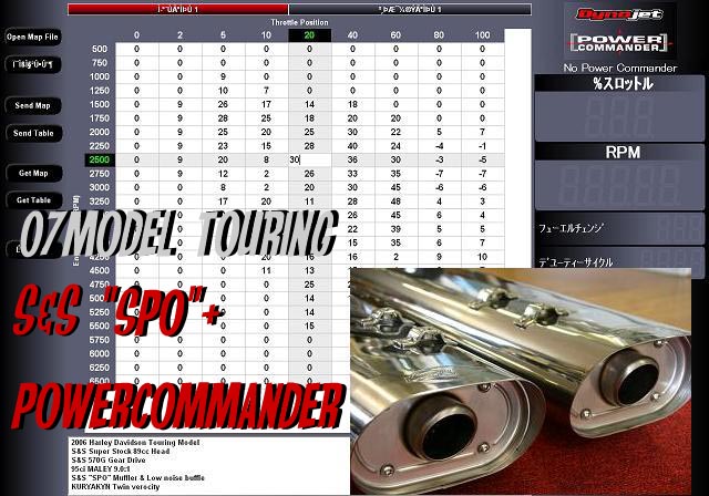 今後、07年@ツーリングモデル用にS&Sのステンレスパフォーマンスオーバルマフラー(SPO)にセッティングした、パワーコマンダーUSB?をセットした内容の商品をラインナップします。データーは出来上がり、あとは最終的な調整のみです。