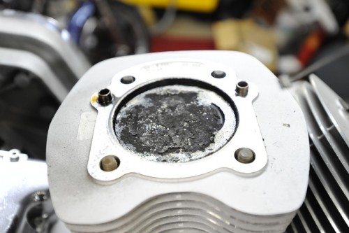 シリンダーへッドを外してピストンヘッドをみた図