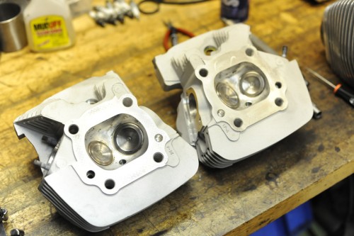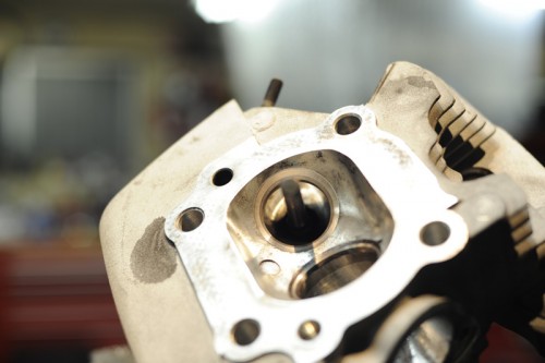 マズはシリンダーヘッドのカーボン落としと、シートカットにかかる。
