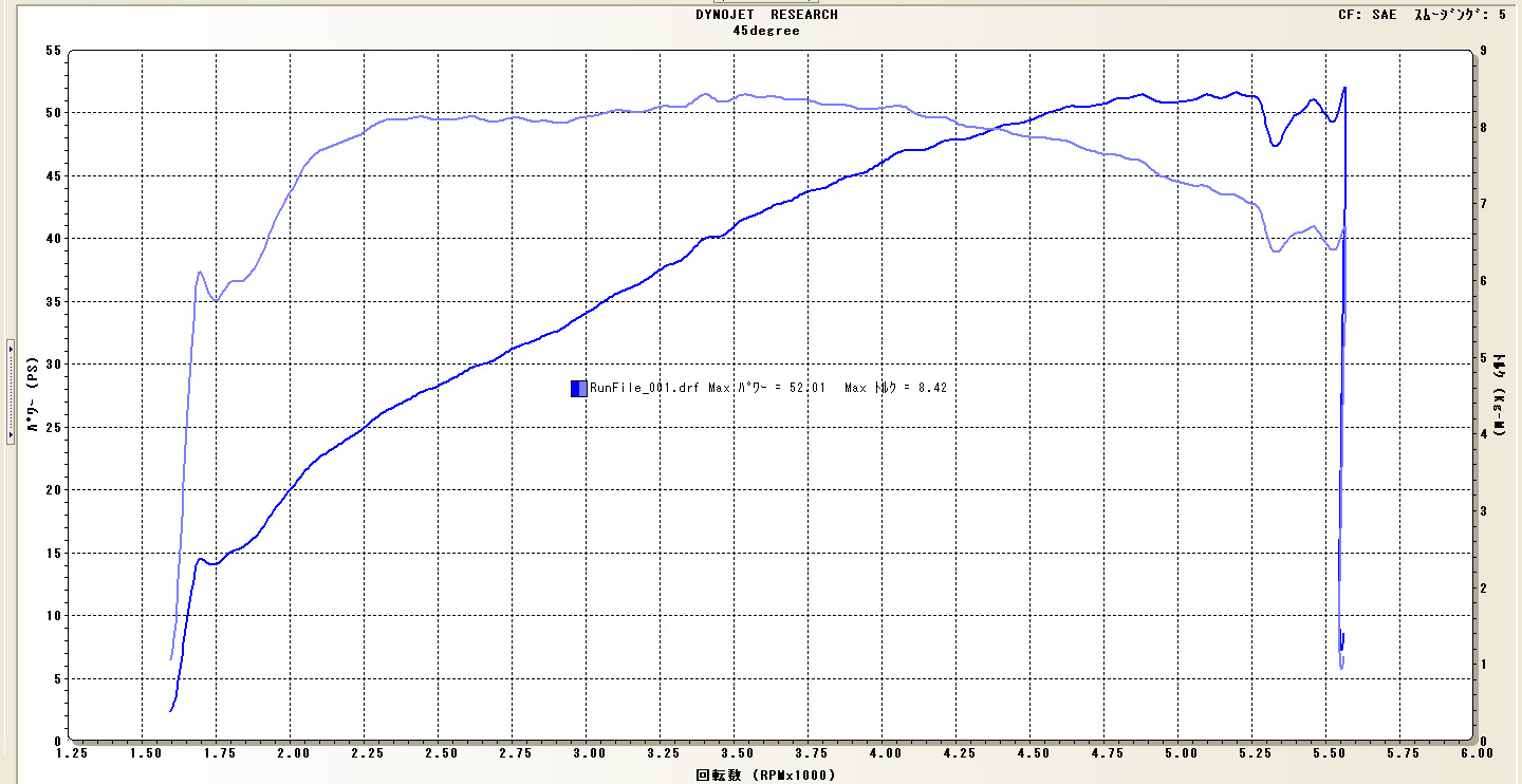MAXパワー52PS / MAXトルク 8.42kg-m でした。