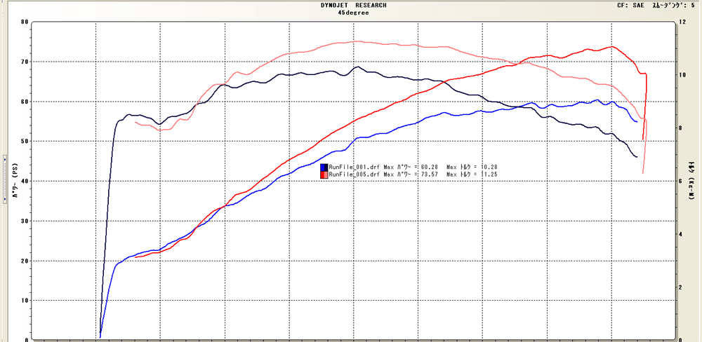 フルコンを使おうがサブコンを使おうが、調整範囲であればやろうとしている事は同じものですので、馬力であったりトルクの最大値「MAXパワー」に開きはありません。仮に開きが(大きく)出たとしたら調整が悪いとも考えられま〜す。ま、普通に考えたら当たり前田のクラッカーな話ですけど。