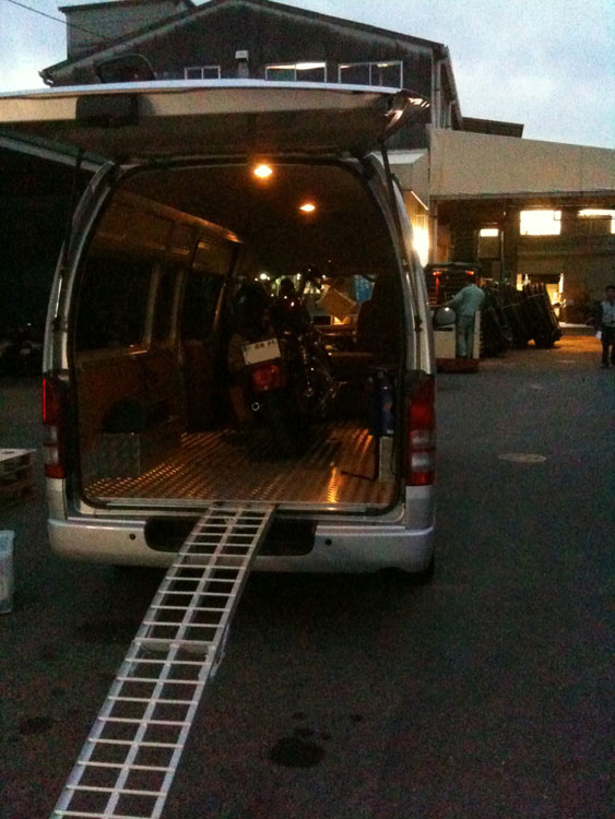 45の日常?? デポへ 2010/11/19 Dr.マサ 湘南ナンバーのスポーツスターを広島のデポへお迎えに行ってきました^^; 陸送でバイクを送っていただいたら、こちらのデポに集まります。 弊社ではBASさんをよく使っていますよ。