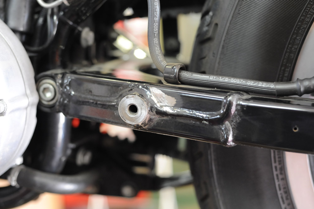 フレーム、バッテリートレイ、ベルトガードなどにも、ふくらみがあり。