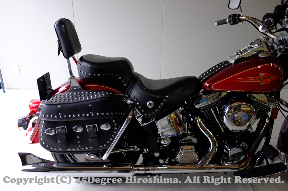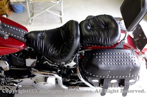 Evolution,エヴォリューション, シート, ソフテイル(FXST/FLST), ボディパーツ関係 雰囲気の良いシート エヴォ用 2011/06/27 Dr.マサ 1994年式FLSTCのシート交換 こちらが純正シートです。 細身でありつつも、厚み、座り心地、腰のホールド感。 ピロータイプのシートは「FLSTC」にビターっとハマっていますね(・∀・) このシートならハンドルの選択肢も増えるでしょう! シーシーバーのバックレストもピロータイプにしたいですね〜。
