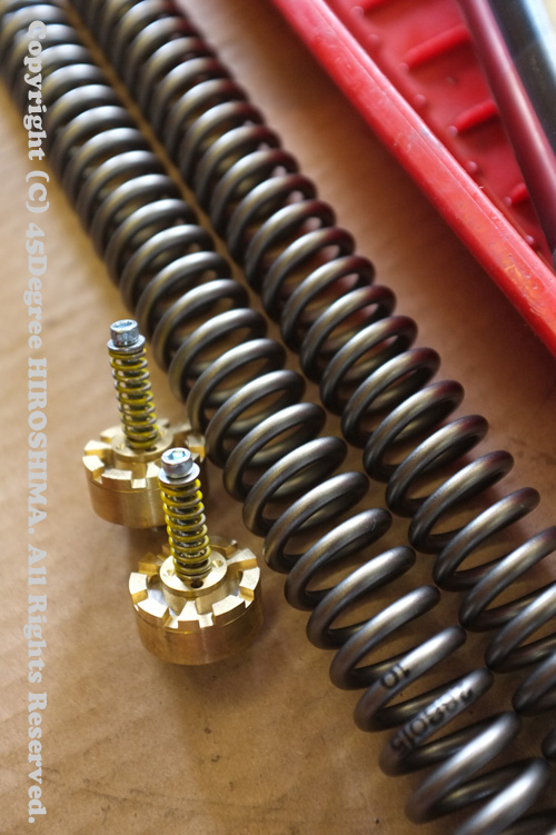 この度はフロントホイールを大径化したため、フロントフォークに着手しました。