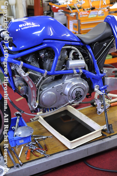 こちらのBuell S1さんは、5月のGW中にトラブルにあい、45に入院していました・・・。