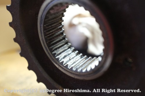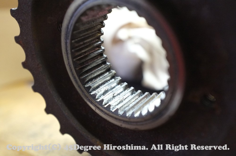 そしてフロントプーリーのスプラインにも異常が見られました。スプラインが痩せています。
