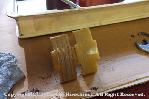 元々ついていたシューは、トンでもないほど削れています。