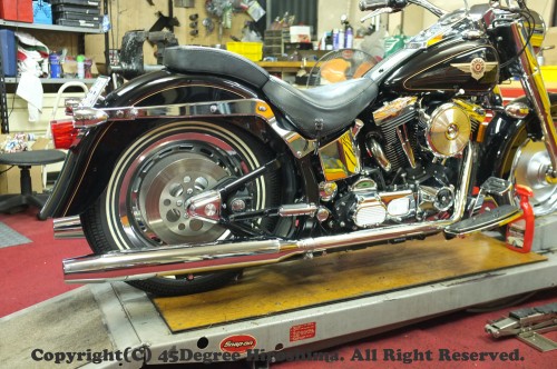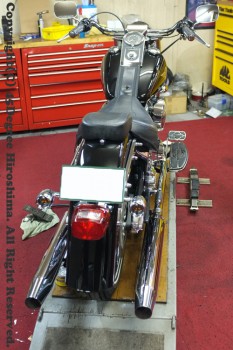 ファットボーイの純正エキパイからの変更ですから、大幅なルックス変更です。