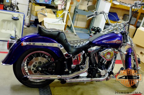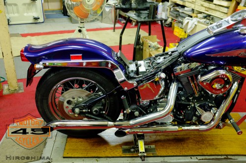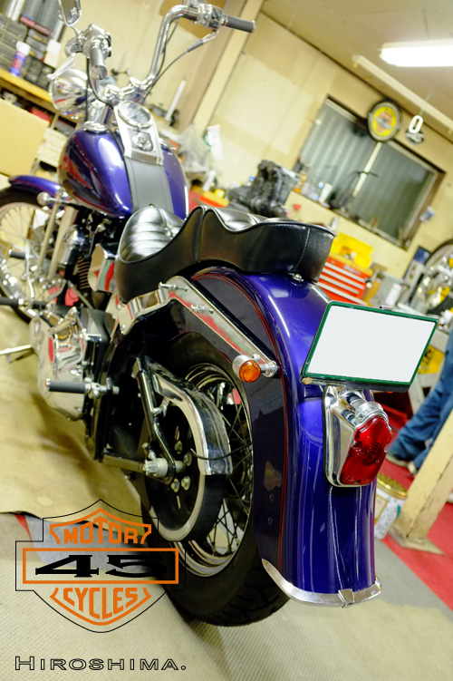 Evolution,エヴォリューション, ソフテイル(FXST/FLST), ボディパーツ関係 リアフェンダー交換 2011/10/04 Dr.マサ エヴォスプリンガーのリアフェンダー交換です。 ボブフェンダーからヘリテイジ系の物に変えますが、これもひと手間加えたものになります。 トゥームストンのテールライトのみのシンプルな仕上げです。 細かい所は出来てません。 一応外観は出来上がりの姿になりました。