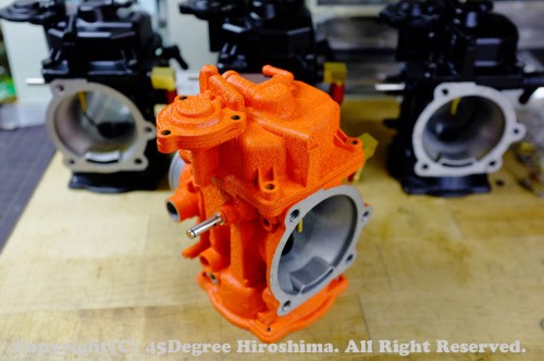 キャブレター キャブデー 2011/11/30 Dr.マサ Full-Tune CVの製造現場からお知らせ! 次々と、キャブのお化粧が進んでいきます! ファンキーオレンジ! 明日はこれを組み付けます(・∀・)