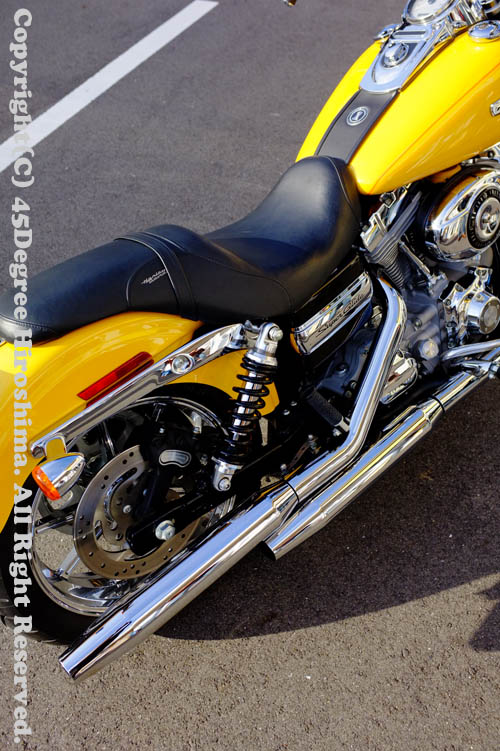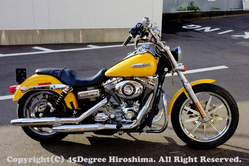 FXD Dyna, TwinCam, ツインカム, サスペンション, 足回り 07y FXDCの足回りチューニング 2011/12/12 Dr.マサ かかとがしっかりと、地面に届くようにしたい!という事でリアサスのみを最短サイズに変更されていましたが、ダイナの場合そのフレーム構造から安定感に欠けてしまい、エンジンを支えている後ろ側のアイソレーターにも負担がかかります。そこでリア側の車高を上げますが、これじゃあ足つきが・・・・と思われますが、車高バランスを考慮しサスペンションをチューニングしてあげると、意外な事に逆に足つきが良くなり、安定感もあり、走りやすくなります。取り回しも軽く仕上がっているんですよ(^v^)