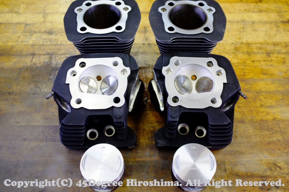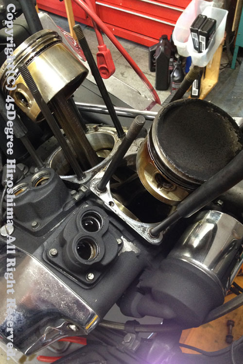 45のブログを熱心に見ておられる人ならお気付きであろうと思うが、フォーク回りを磨きあげた写真はあるにも関わらず、エンジン内部を磨きあげた写真が無いことを。これ、実は工賃ばかりかさむ無意味な行為である。もちろん、写真写りはとても良いものになりますが、実際に効果の程はというと、それではエンジンは良くならない。カーボンが落としやすいとか、その程度。むしろハーレーの様な低回転で主に動くエンジンでは不具合すらある。趣味でやる分にはどうぞ、と言いたい所だが、我々は仕事で請け負う訳だから費用対効果が全く望めないものはお勧めしていない。
