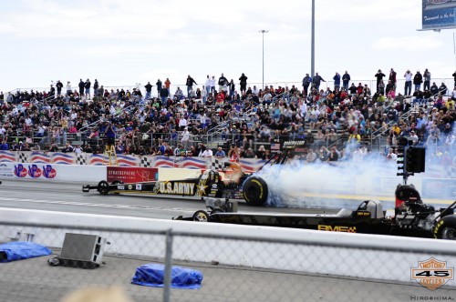 こうやって、カメラで安定して撮れてますが、正直ピントがブレてないかと心配するほどの衝撃波が体を突き抜けます。トップフューエルクラスだけは、書いて字のごとく、「凄まじい」です。