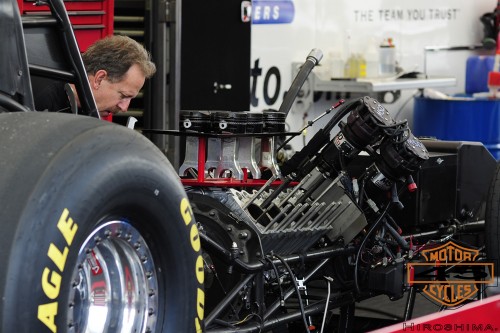 トップフューエルクラスが走り終わり、ピットに行くとオモロイかも!と向かうと、走り終わったマシーン達が居ました。噂によれば、走り終わるとエンジン分解すると聞いていたので、ここに猫まっしぐら。
