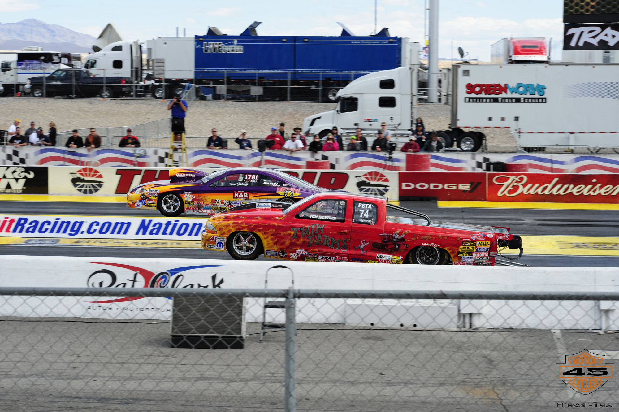 NHRAに招待された人達なので非常に上手い人ばかりだったと思われますが、冷静に。冷静に、見ると、非常にタイムの良かった人は推定700馬力前後のマシーンを、ゴールまでウィリーしっぱなしで走り続けています。とてつもない前進力に加え、ウィリーしっぱなし、あの極太のリアタイヤは遠心力で細くなり、どっちに傾いても不思議ではない状況下、隣には壁がある環境で、クォーターマイルを走りきる・・・・たった6秒の間の壮絶なドラマを、ただ、真っ直ぐ走るだけとかドラッグレースを単調に見ている人は、考え直すべきです。こりゃあ・・・・正気の沙汰ではありません。
