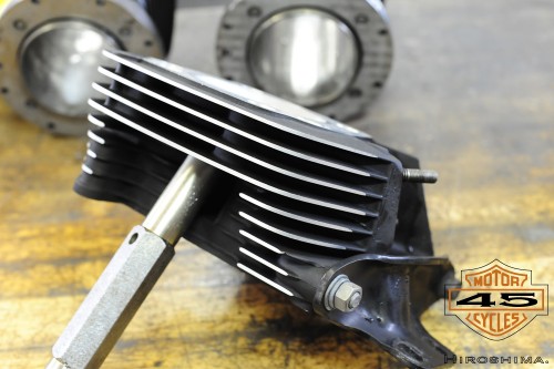 プッシュロッドカバーの下からエンジンオイル流出事件によりガスケット交換を余儀なくされた1200Cですが、ついでに腰上のオーバーホールをば。このメニューにはシリンダーヘッドのシートカットと、バルブのリフェースが含まれます。これからご紹介しますMedi-Brightは別途となりますが、それでもやる価値は十分あるので、ご紹介しておきます。