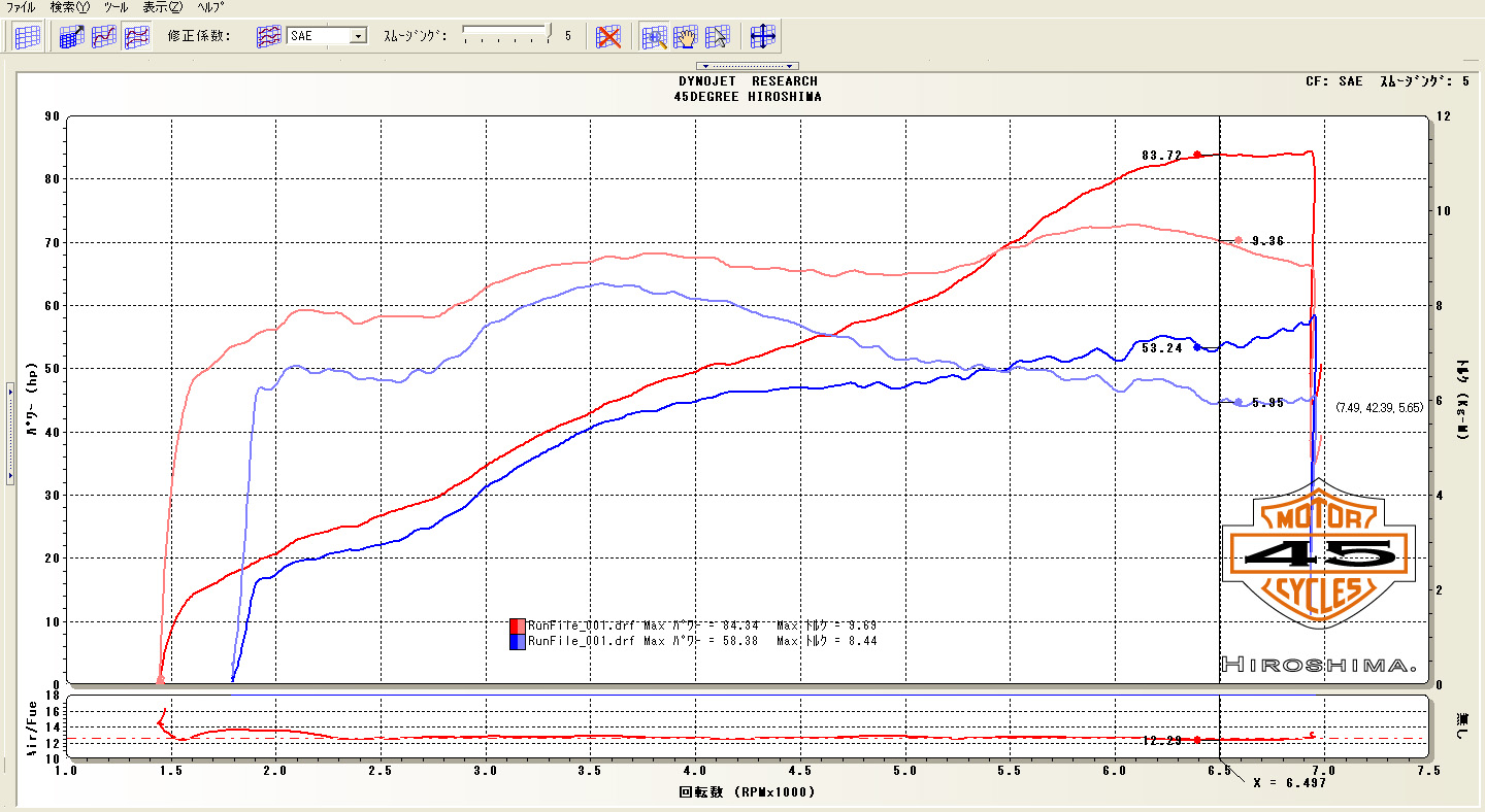 爆音なHigh Performanceレーシングマフラーではないので馬力は84馬力止まりですが、それでも30馬力アップです。