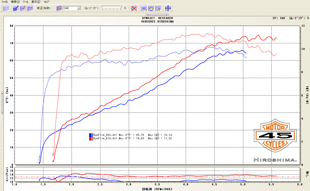 88ci ........ 1450cc, HSRキャブレター, Ignition(点火), TwinCam, ツインカム, キャブレター, ソフテイル(FXST/FLST), ツインテック(TwinTec) 06yFXST HSRキャブ&TwinTecモジュール 交換&チューニング2 2012/08/01 Dr.マサ 前回の記事からだいぶ日が開いてしまいました。 こちらが、このFXST専用に作成したツイテックモジュールのMAPです。 チューニング前後のロールオンテストの結果です。 純正CVキャブとの比較データーはありませんm(_ _)m これにて完成!
