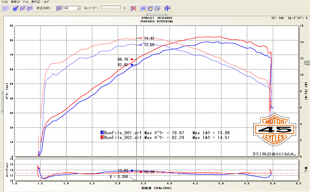 多用する3000回転までの最大トルクは大雑把に見ても1キロ近くアップしていました(^v^)