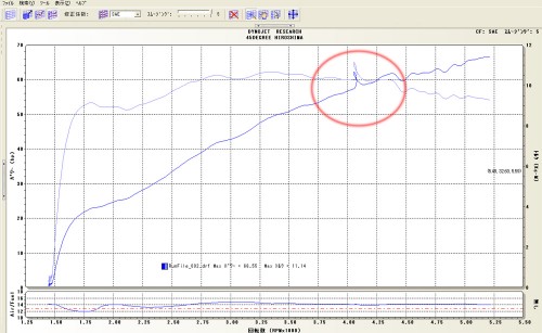 あらら・・・くるる〜っと、グラフが巻いています。ん!クラッチが滑っている様子がグラフに現れました。