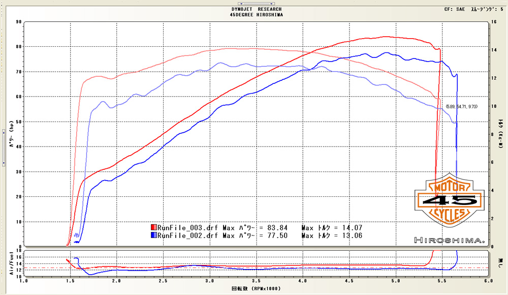 それぞれ、最高値の変化ですから、トルクの立ち上がりでの差はかなりあります。
