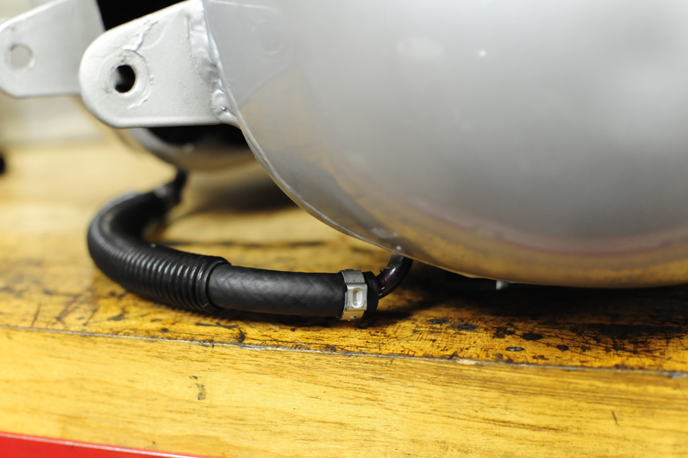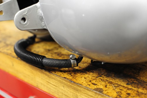 新しいホースを。ホースクランプはカシメ式です。プライベーターの皆さんの天敵クランプ??