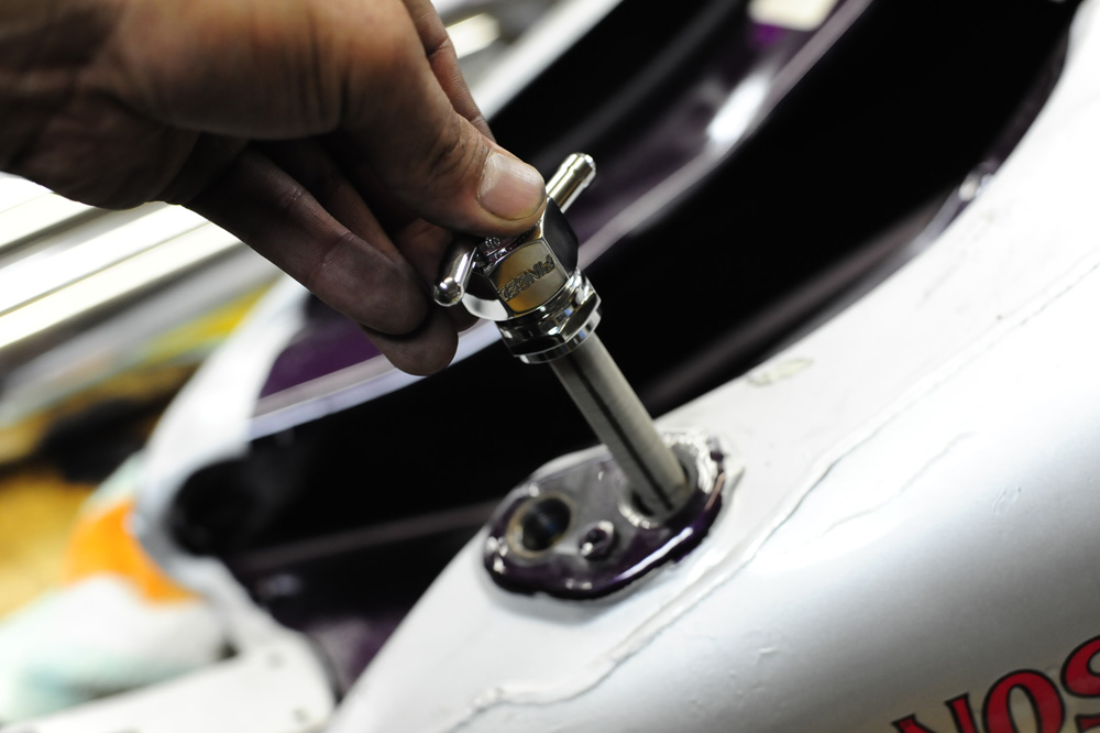この度はインジェクションを取り外し、新たに取り付けたイグニッションシステムは、コンピューター制御されたタイプ。狙った値へマッピングが可能で、ダイナSなどでは三拍子を言わせながらもパワフルに走る事はとても困難ですが、こちらのコンピューター制御されたタイプなら、狙って設定してやれば、三拍子を言わせながらもモリモリーっと、パワフルに走るなんて事が可能です。
