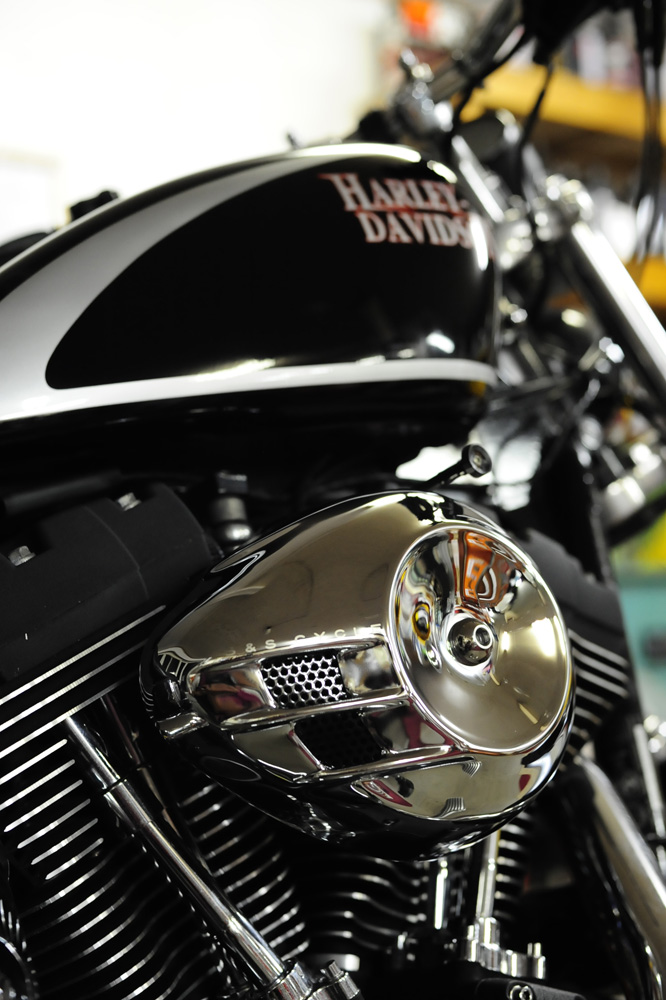 88ci ........ 1450cc, FXD Dyna, TwinCam, ツインカム, インテーク(吸気), エアクリーナー 99y FXDX エアクリーナー交換(S&S Air Stream) 2012/09/18 Dr.マサ 6月初めに外装ペイントでお預かりしていたFXDXです。この度はエアクリーナーの交換、と、その他メンテナンス。 S&Sのエアーストリームへ。クロームめっきのカバーで正解でしたね(^ー^)