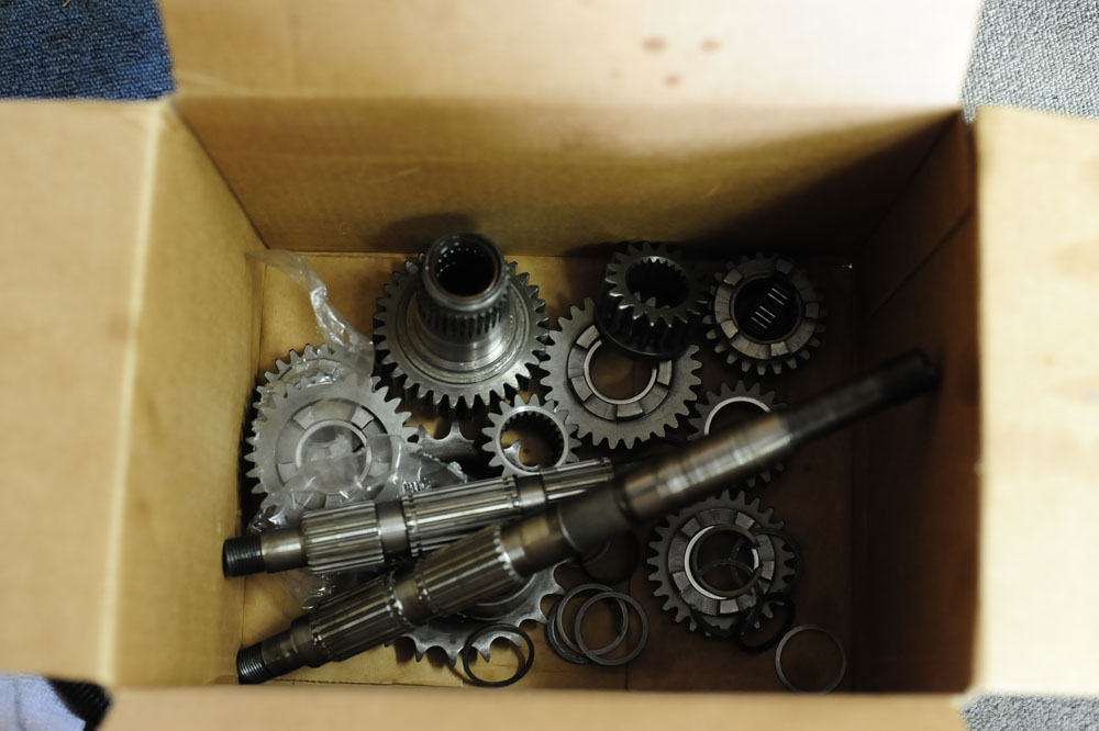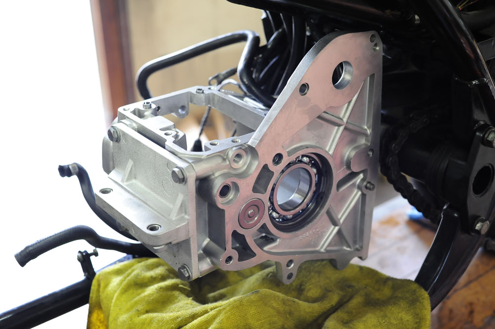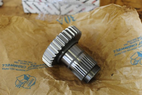 既存のスプロケットは、メインドライブギアーと触れている面積が小さいものです。この度交換するスプロケットはメインドライブギアーとの接触面積の大きなタイプ。接触面積が増えれば、極端に表現しますが、同じ力であれば”点”と”面”で受ける違い。ライフ的には圧倒的に良くなります。それに伴い、各部交換をしていきます。