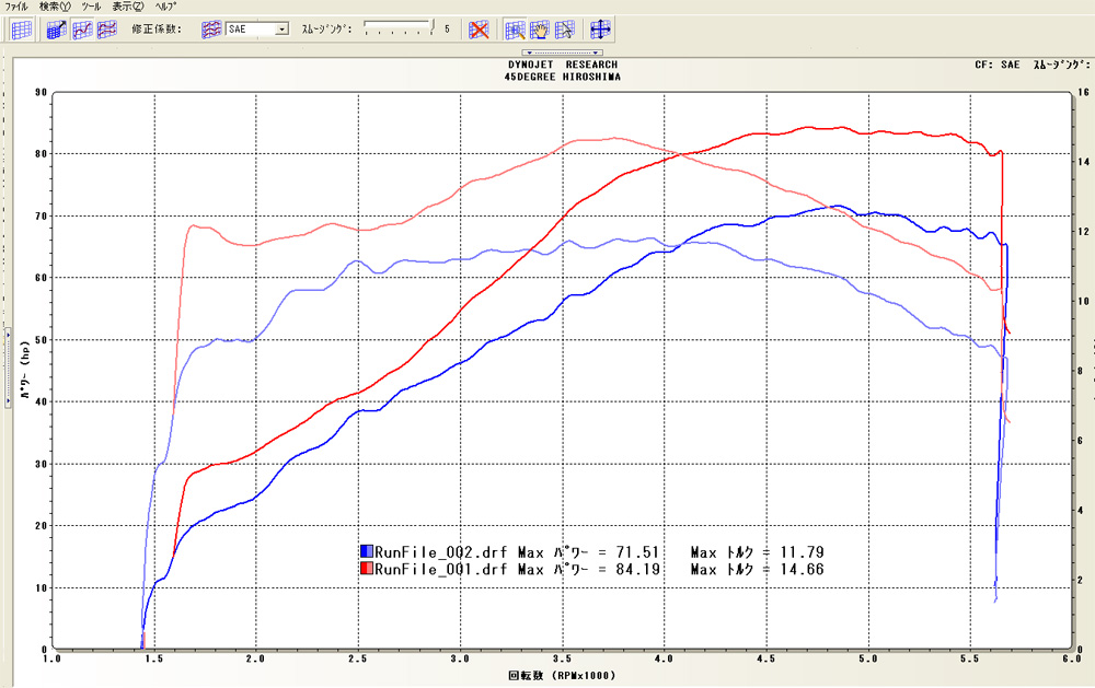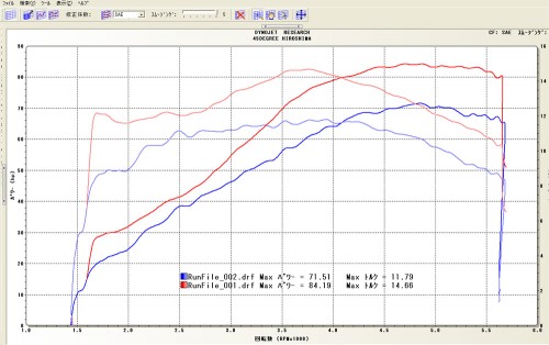 こちらが、お持ち込み頂いた状態と、チューニングまで済ませた時の比較グラフです。