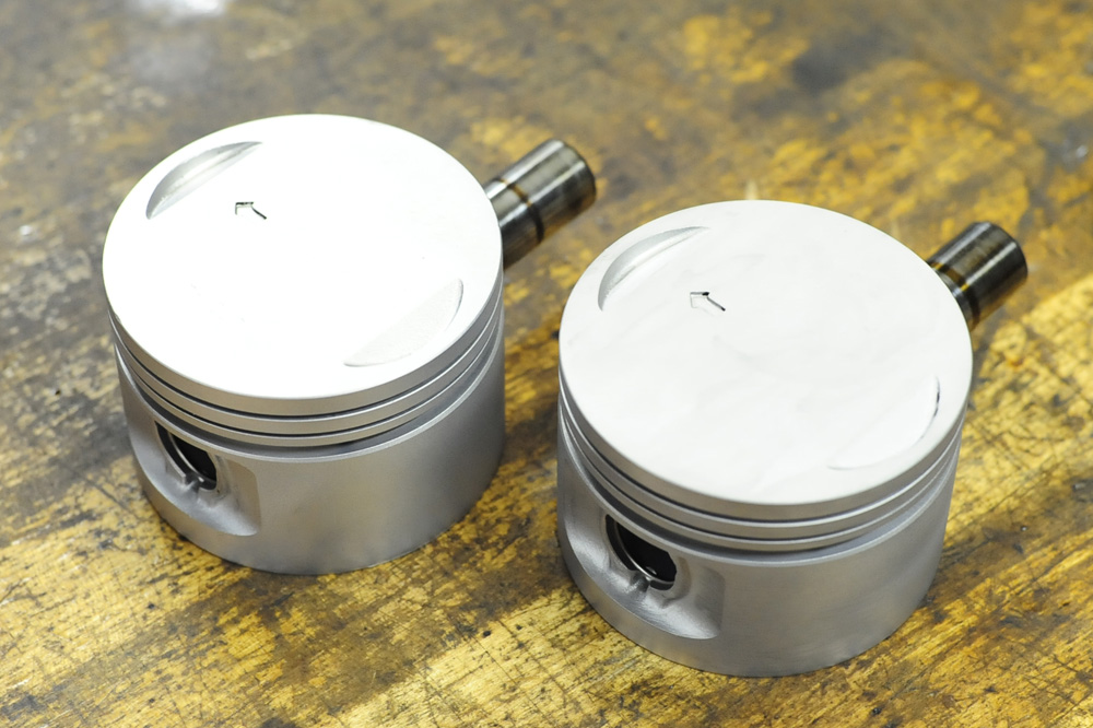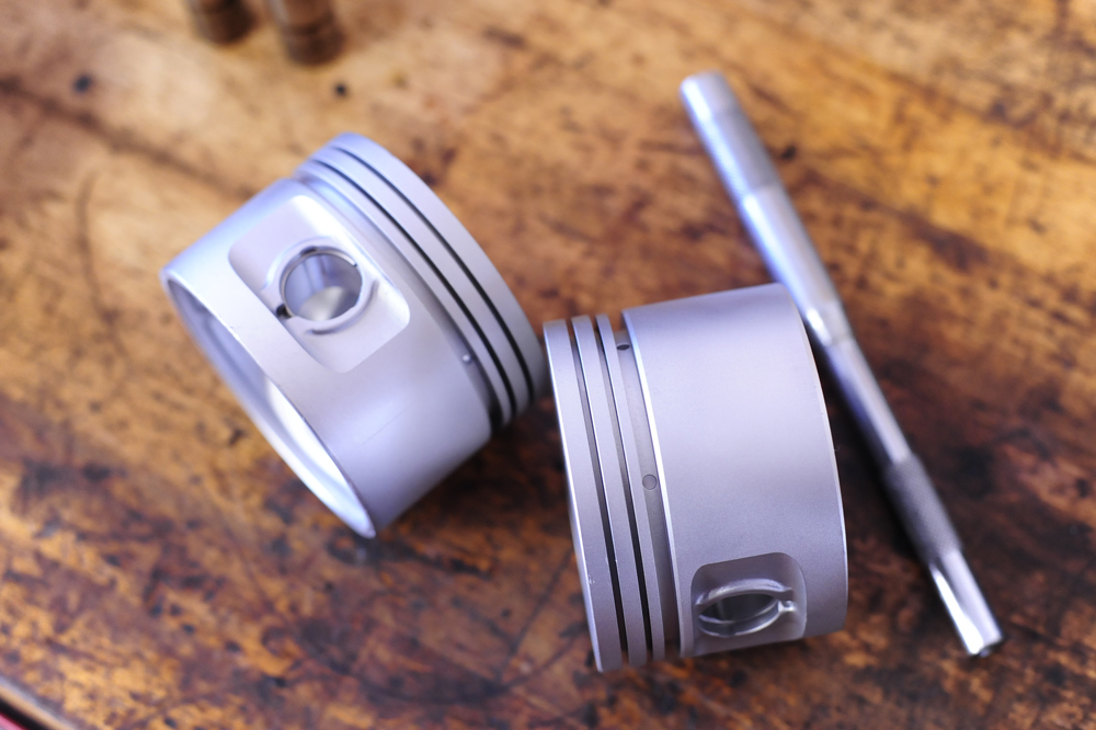 この度ピストンに対して施したMedi-Bright処理は、いつもとは違う処理を施してあります。Medi-Brightと一言で済ませても、対象物に対して使う材料を変え処理しています。この度はピストン表面にある角や小さなバリを慣らし、更に潤滑油が保持させ摺動性が向上する事が目的でとした物で、指でオイルを塗布しても良い感じでオイルを保持してくれるようになったのが判ります。