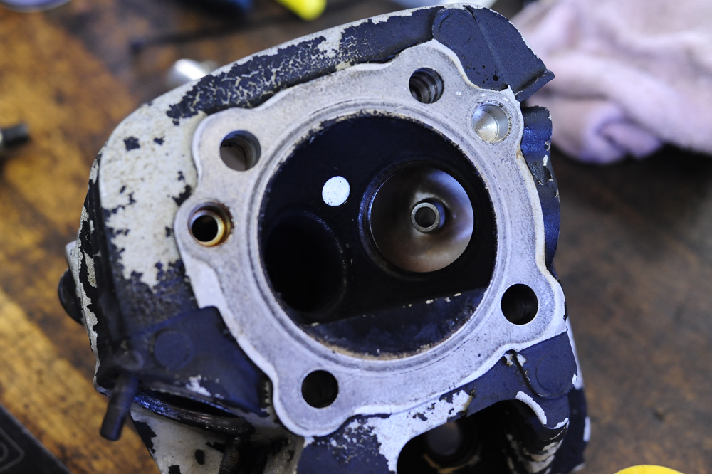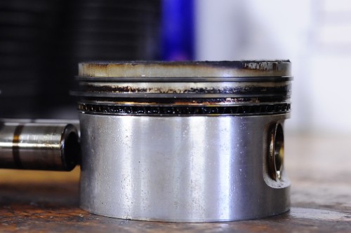 症状を伺ってみると、マフラーから白煙が出るようになったとの事。白煙が出るとは、エンジン内で一定以上のオイルが燃焼している症状ですが、エンジン始動時のみだと、どうもオイル下がりっぽい。