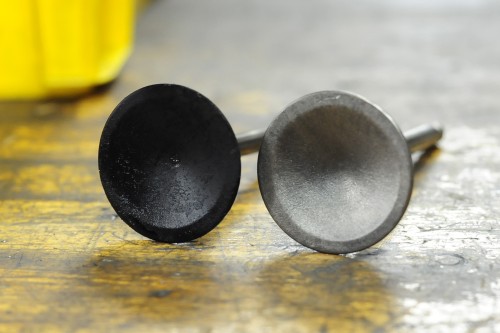 いつもは100%ボコボコになっているエグゾースト側のバルブ。シートカットしていた御陰で全くなっていません。ヨシヨシ。