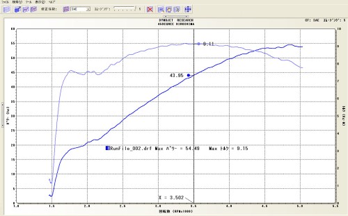 2000回転付近の落ち込みが気になりますが、パワーカーブもまずまずで、パワーを出すには条件の良くないロング・フィッシュテールエグゾーストでも馬力のカーブも綺麗に伸びていっていますね。