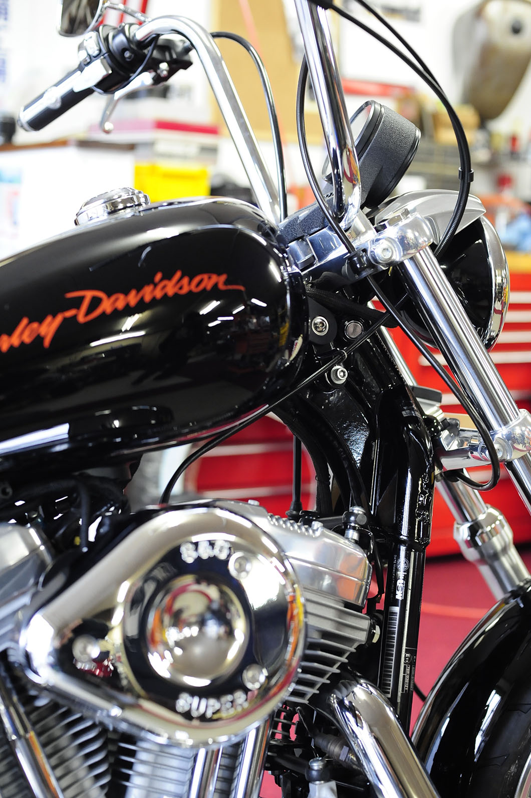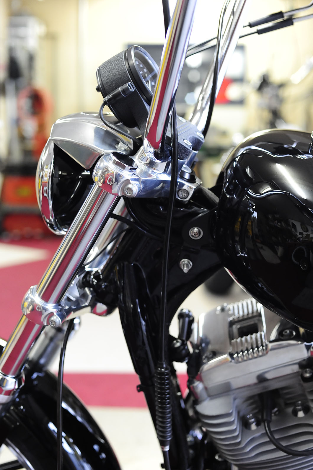 コイル&イグニッションキーは左側へ移設。プラグコードもコンパクトに、さりげなく主張する適当な長さ。